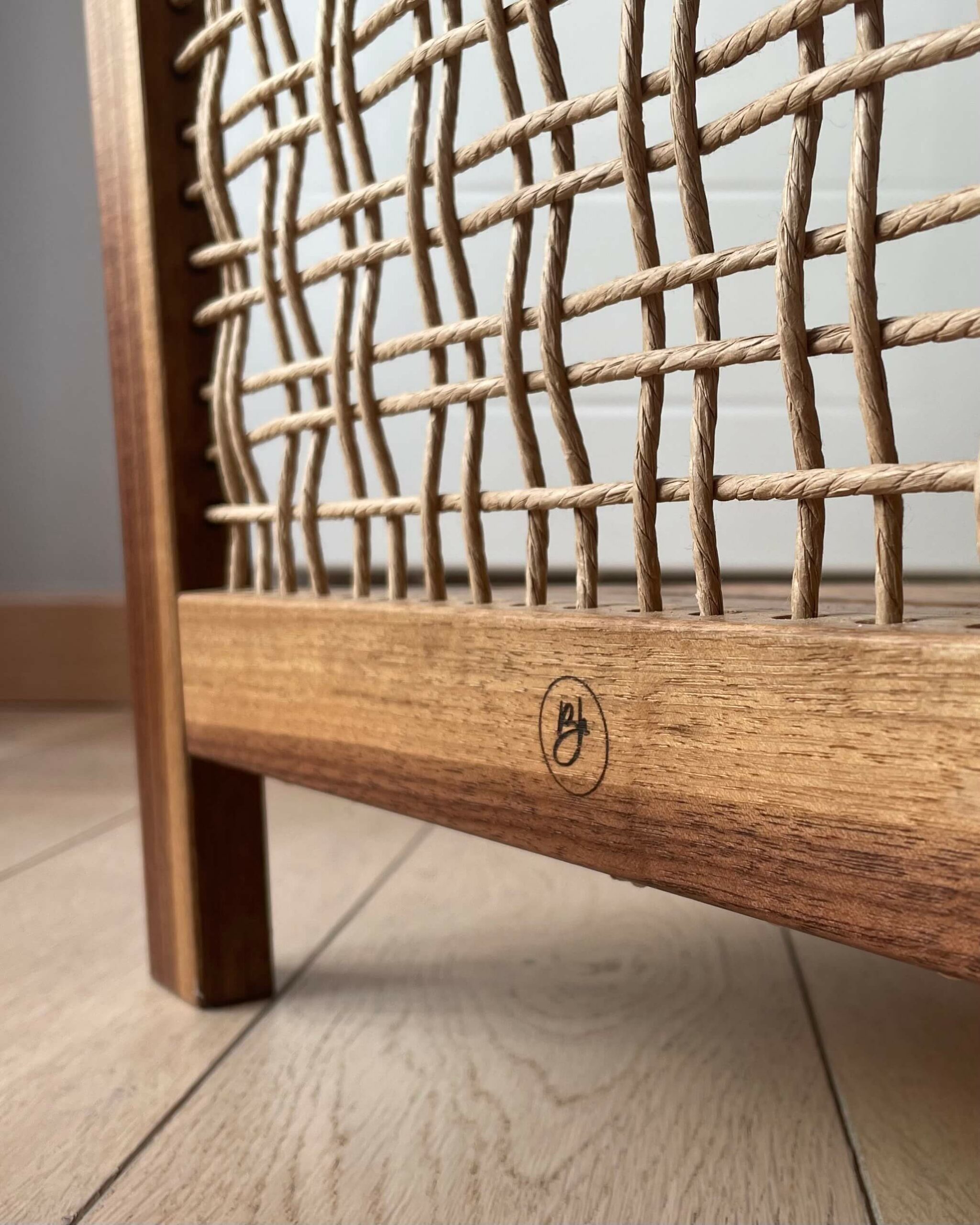 Certaines pièces naissent d’une intention simple. D’autres s’imposent comme une recherche. Ce meuble, réalisé en noyer américain et corde danoise, s’inscrit dans cette seconde approche. il répond à une demande spécifique de ma cliente.