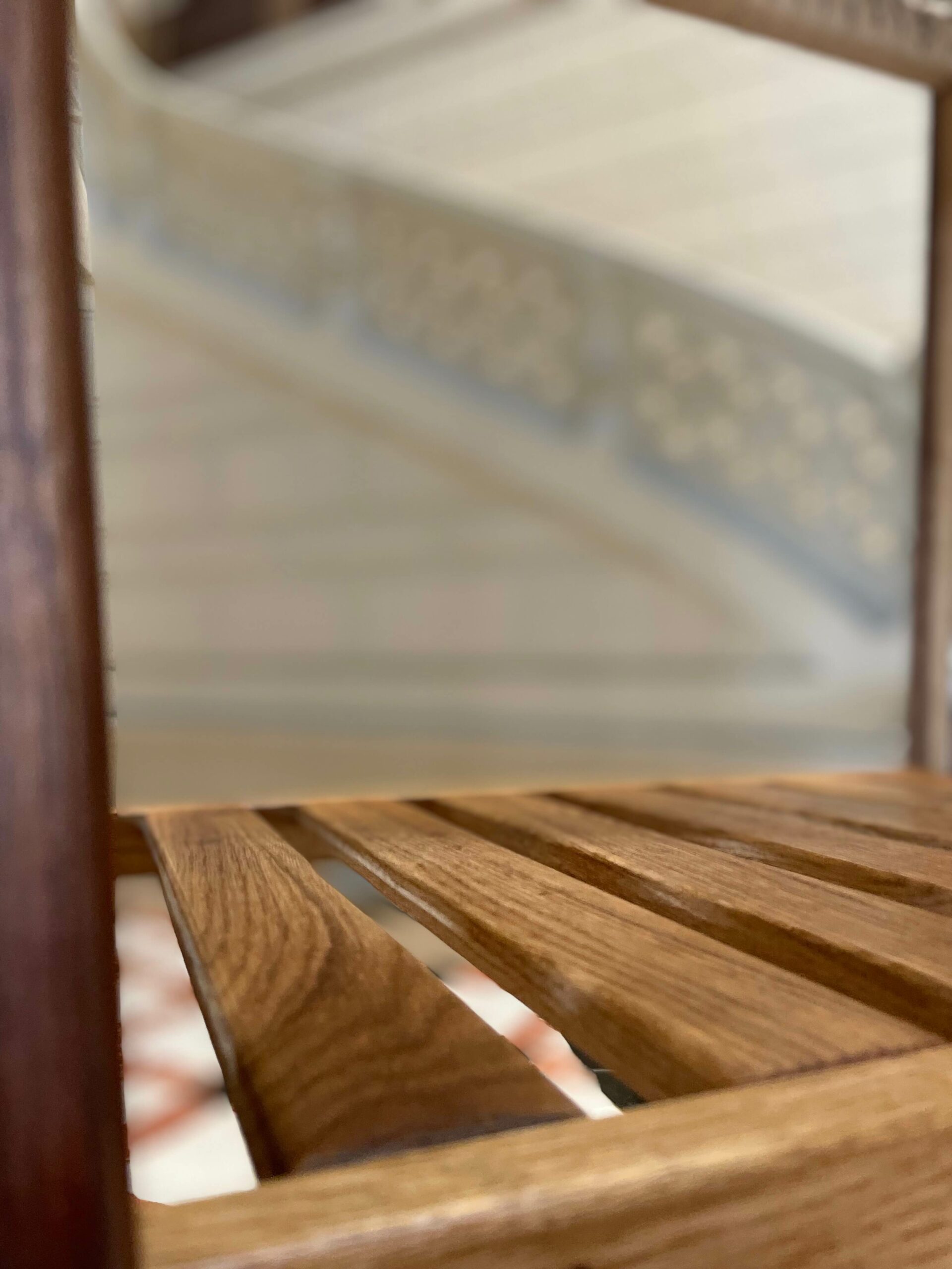Le noyer américain offre une matière profonde, nuancée, presque veloutée. Son veinage, plus discret que celui du chêne, permet de laisser respirer la structure. Il accompagne la ligne sans la dominer. Le contraste avec la corde danoise naturelle vient révéler cette profondeur.